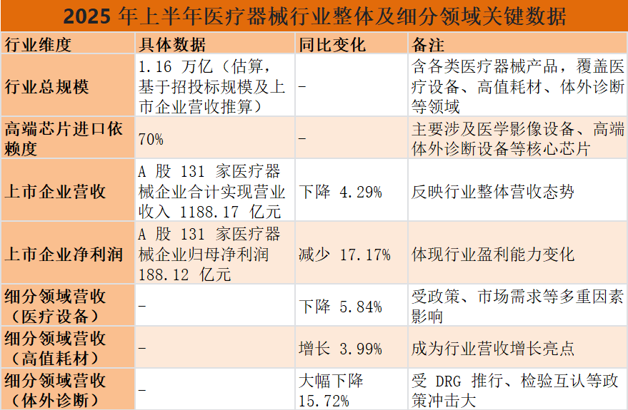 2025医疗器械半年报:1.16万亿规模背后,70%高端芯片依赖进口,谁在拖国产替代后腿?